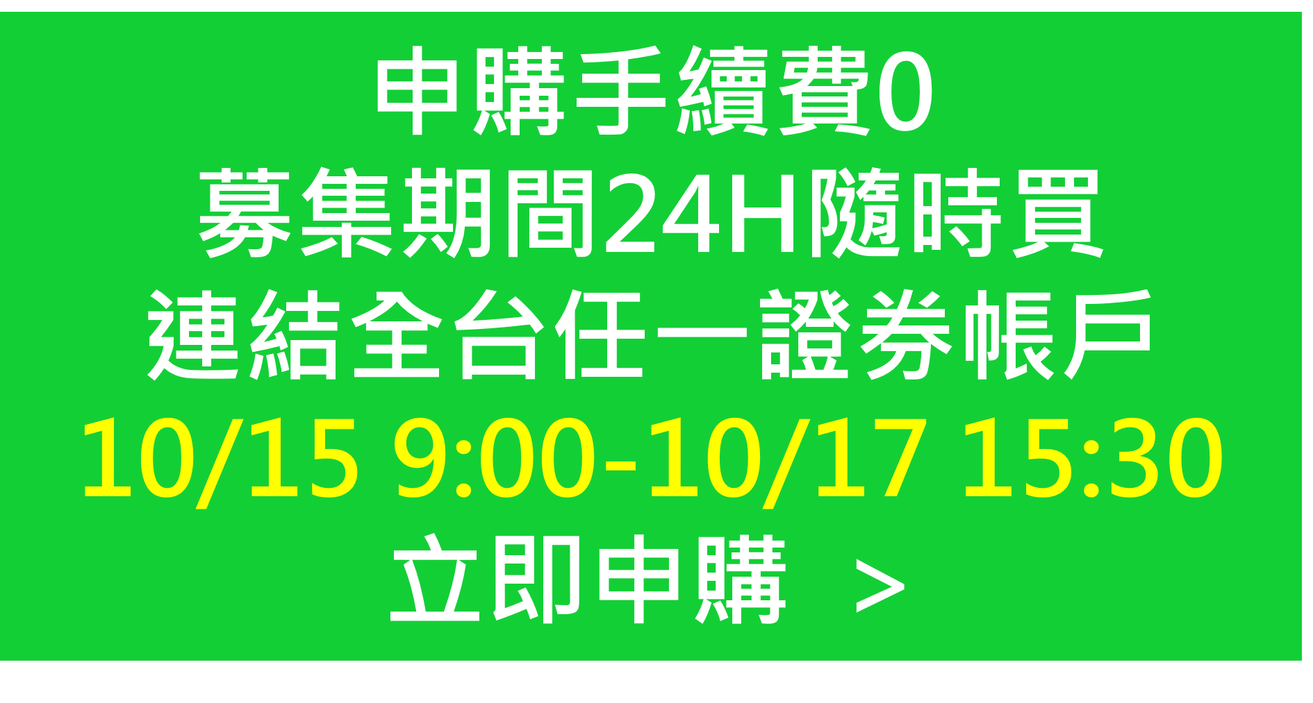 00988A將於10/15-10/17在LINE Bank「新募集ETF」平台開放申購,只要新台幣10,000元起,就享有最創新的申購體驗與創新財富機會: