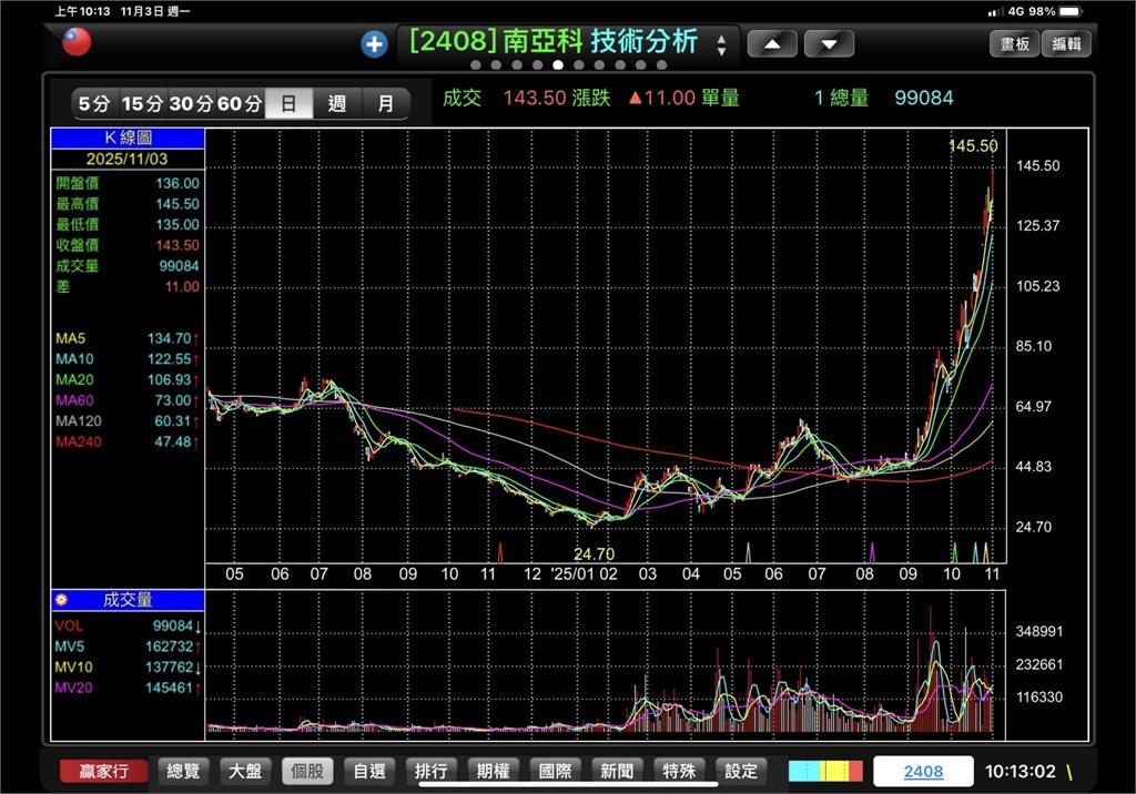 記憶體大浪讓南亞科技漲到145.5元,市值到4509億元,謝金河認為南亞是最有可能成為台塑四寶率先翻起來的公司。(圖/翻攝自謝金河臉書)